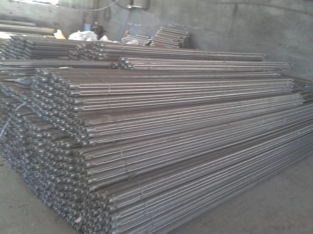 流化棒内管是选用热镀锌的钢管,首先由带钢三面冲孔,冲孔直径为6mm,以后采用高频焊焊接成管,在镀锌管外包裹两层专门定制一面绒面一面光面的300g/m2滤布,滤布外套有耐磨、耐腐蚀不锈钢波纹管,最后用400吨八口缩管机进行缩口,即保证了气化管良好的透气性,又避免物料进入气化管,延长了气化管使用寿命。库内安装均化装置,库内均化装置是我公司的专业设计,在出料及出库率的效果上能达到90%以上,我公司采用均化装置是我公司生产的流化棒,安装在库内填充斜面上,安装是按库内扇形排列安装,安装分为2环,减压锥内一环,减压锥外一环,每个扇形分为6个供气区域,6个区分为3个大区,供气为对称循环供气,安装间距大的是500mm,最小的是 300mm,安装的流化棒能在整个钢板库内达到每一个地方无死角,流化棒优点在于间距小,透气为4边透气,彻底达到均化效果,提高物料出库率。我公司提供的气化控制箱,为全自动电器操作系统,自动循环供气设计。